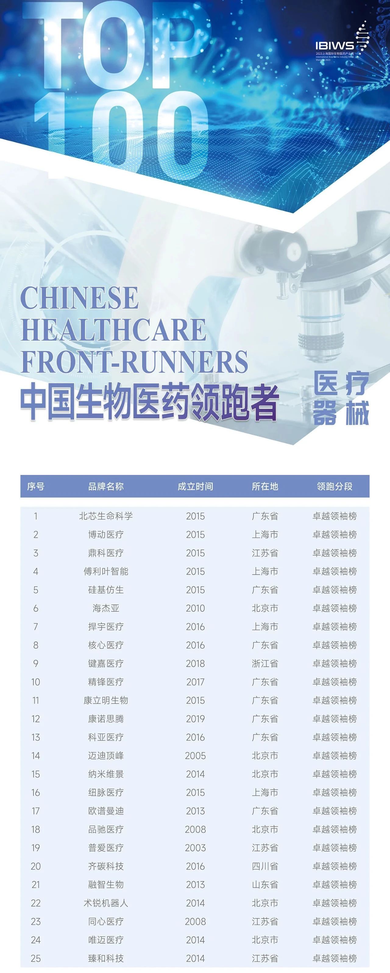 領跑TOP100 | 「海杰亞醫療」獲評「Front-Runners」醫療器械賽道第6名!